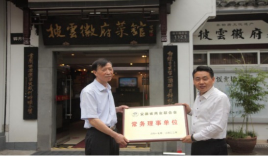 在结束调研前,党建指导员张光建代表省商业联合授予歙县披云山庄有限公司常务理事单位匾牌。通过这次考察调研,省商业联合会党支部一行人员深深感到歙县披云山庄有限公司真正做到了理论自信、道路自信、制度自信、文化自信,为商业服务业做好党建工作树立了标杆。(安徽省商业联合会党支部供稿)