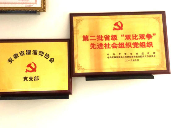2018年,安徽省建造师协会党支部在省社会组织综合党委的领导下,坚持党建引领,固本强基。注重以社会组织党组织标准化建设和实施党支部建设提升行动为抓手,支部组织力得到稳固提升,支部战斗堡垒作用和党员先锋模范作用得到有效发挥,在全省非公企业和社会组织党建工作示范点评选命名工作中,被评为“第二批省级‘双比双争’先进社会组织党组织”。