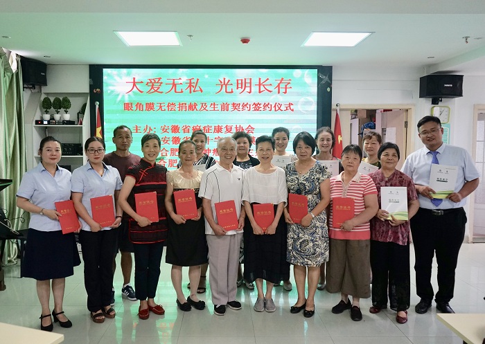 为了回馈社会,传播正能量,发扬“人道、博爱、奉献”精神,6月28日,由安徽省癌症康复协会党支部、安徽省红十字眼角膜库、合肥凤凰肿瘤医院党支部及合肥市福寿之家关爱服务中心的志愿者们,在安康会活动中心隆重举行以“奉献爱心,传播希望”为主题的眼角膜捐献签约活动,并以此向党的98周年生日献礼!