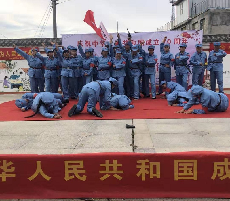 在天朗气清、金风送爽,丹桂飘香、稻菽遍地的怡人季节,安徽至德传统文化研究院党支部根据自身特点,结合“不忘初心 牢记使命”的主题教育,2019年9月29日,在合肥市长丰县双墩镇吴店社区,举办了首场“壮丽七十年 奋进新时代”弘扬革命传统的文艺演出。