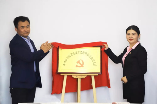 安徽省社会组织综合党委委员冯斌宣读了《关于成立安徽省安全技术防范行业协会党支部的批复》,并对协会党支部成立表示衷心祝贺。随后安徽省社会组织综合党委委员冯斌和安徽省安防协会党支部书记于利莉共同进行揭牌。