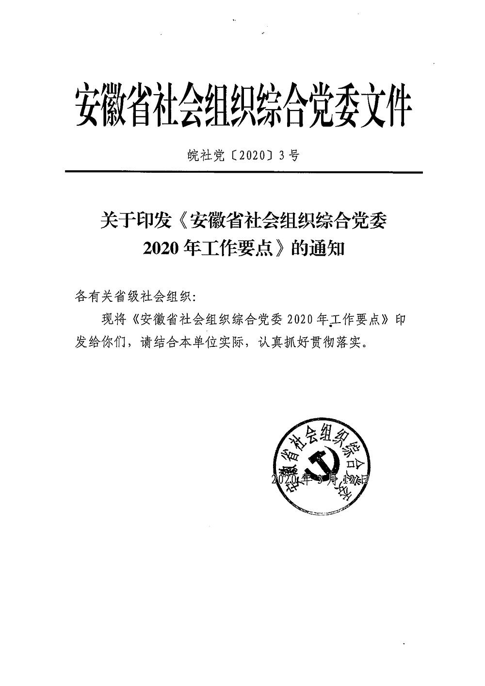关于印发《安徽省社会组织综合党委 2020年工作要点》的通知
