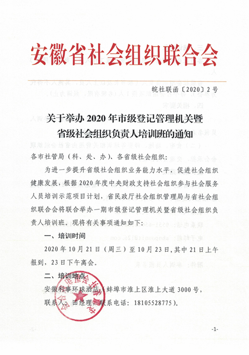 关于举办2020年市级登记管理机关暨省级社会组织负责人培训班的通知