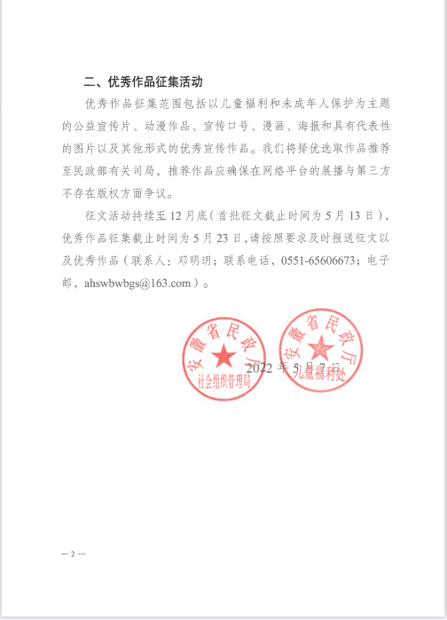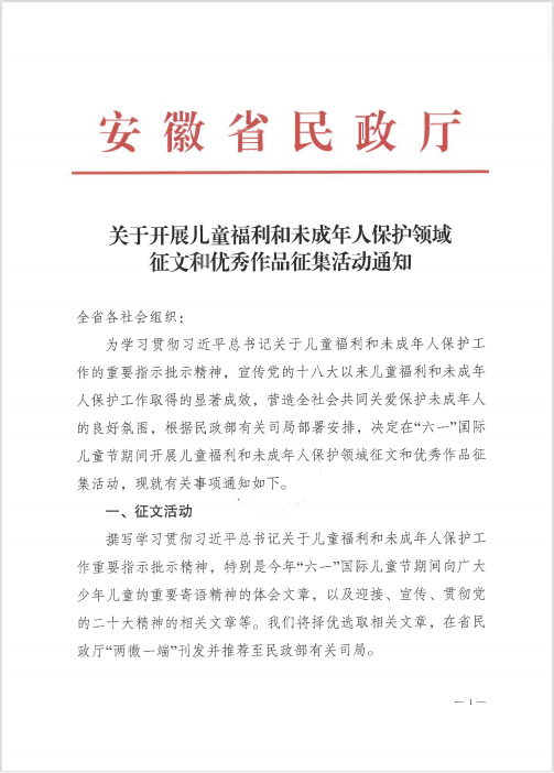 关于开展儿童福利和未成年人保护领域征文和优秀作品征集活动通知