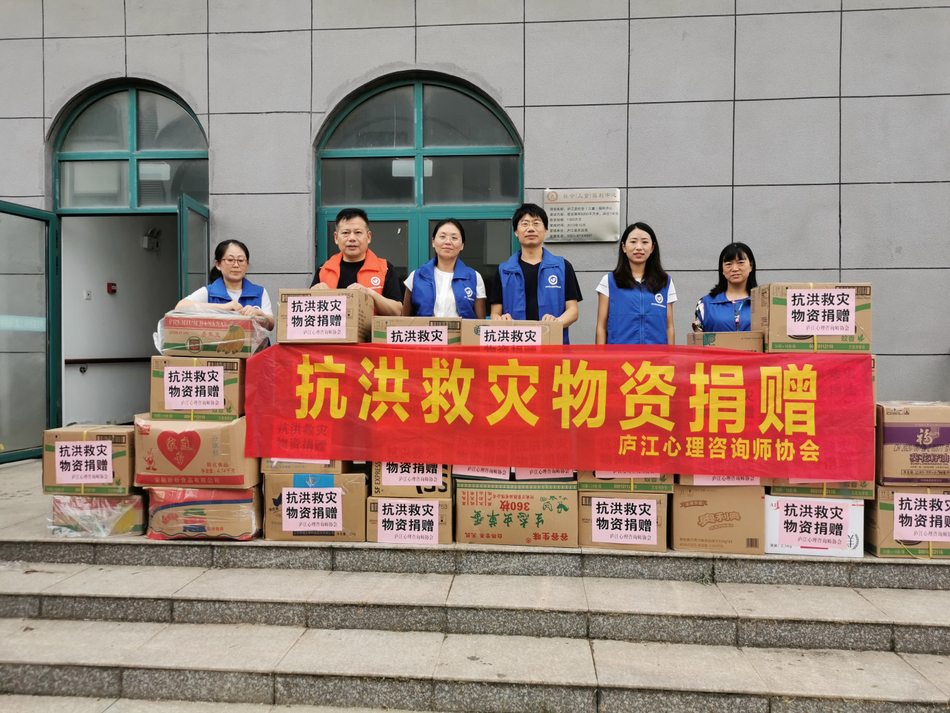 7月26日,庐江心理咨询师协会会员及志愿者募集资金购买价值6000元蚊香、花露水、衣物等生活物资捐至县民政局救灾物资中心。