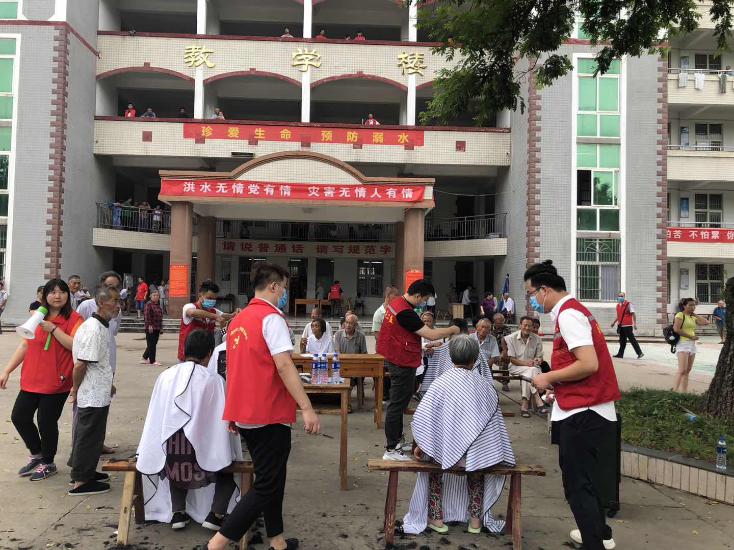 27日下午,庐江县阳光公益协会志愿者走进晨光小学,开展“阳光义剪”志愿服务活动。截止目前分别给石头中学、石头小学、汤池中学等地安置点群众理发,城南小学、晨光小学抗洪抢险战士们理发,受益群众达七百人。