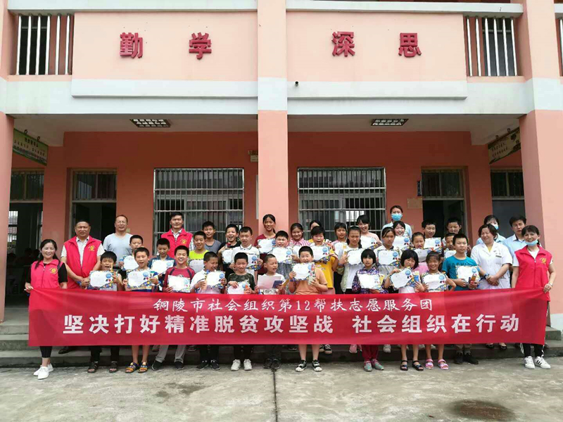 会议指出,前阶段各团队多措并举,组团助力精准帮扶行动进展有序、成效显现,受到贫困村和困难群众的一直好评。在产业帮扶方面,先后组织农学技术专业专家走进长沙乡新农村、陈瑶湖镇官渡村等村,对当地村委有关人员、农户及种植大户代表进行农业技术指导服务和农业科技扶贫培训,深入到生产一线对种植大户给与实地指导,提出进一步改进种植结构的建议;在教育帮扶方面,走进枞阳县白梅乡对困难家庭的高考学子给与每人2000元的助学慰问,并赠送拉杆箱等入学物资;走进山镇白荡湖村、老洲镇源潭村等地,开展贫困留守儿童系列关爱活动;在文化帮扶方面,帮助指导合龙村制定文化建设实施方案,赠送书画作品,绘制文化墙;帮助双龙村改善文化活动室条件,并赠送空调及相关书籍;在健康帮扶方面,组织医务人员为双龙村200余人次困难居民开展义诊活动,发放健康知识手册,免费赠送1500余元医药;走进白梅乡小街村等开展蓝丝带公益行活动,为30名贫困留守儿童和12名“五保户”和2户困难家庭免费口腔义诊,宣传卫生知识,并赠送护牙大礼包;在志愿服务帮扶方面,先后在白柳镇山河村、枞阳镇沿河村、白梅乡小街村等走访看望因病致贫、因病返贫家庭,实施困难群众的微心愿关爱活动;邀请南京专家为藕山镇白荡湖村150余名学生作“近视防控”讲座,免费为40名建档立卡困难家庭孩子进行视力检测,为10名需要配镜的孩子赠送免费配镜的爱心捐助卡。在消费帮扶方面,26个社会组织参与七期“赢在铜陵”战疫助农消费扶贫活动,帮助凤仪乡红旗村、横铺镇合龙村等7个帮扶村助销农副产品21万余元,赢得扶贫基金1.1万元。