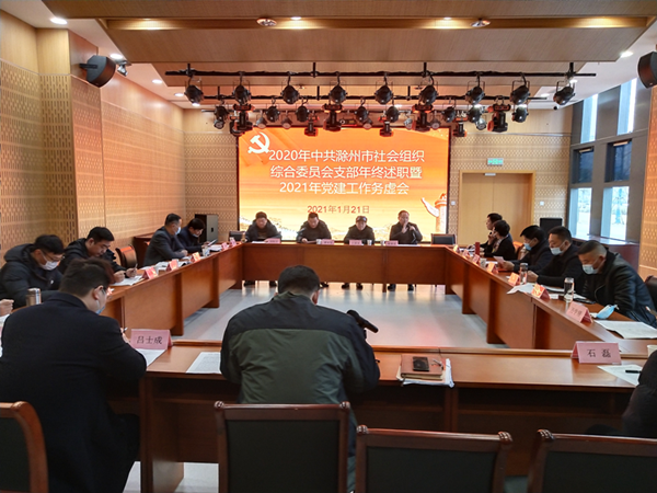 1月22日,滁州市社会组织综合党委根据年度工作计划安排召开支部年终述职暨2021年党建工作务虚会。会议在综合党委副书记董如宝同志的主持下进行,19个支部参加了此次述职。