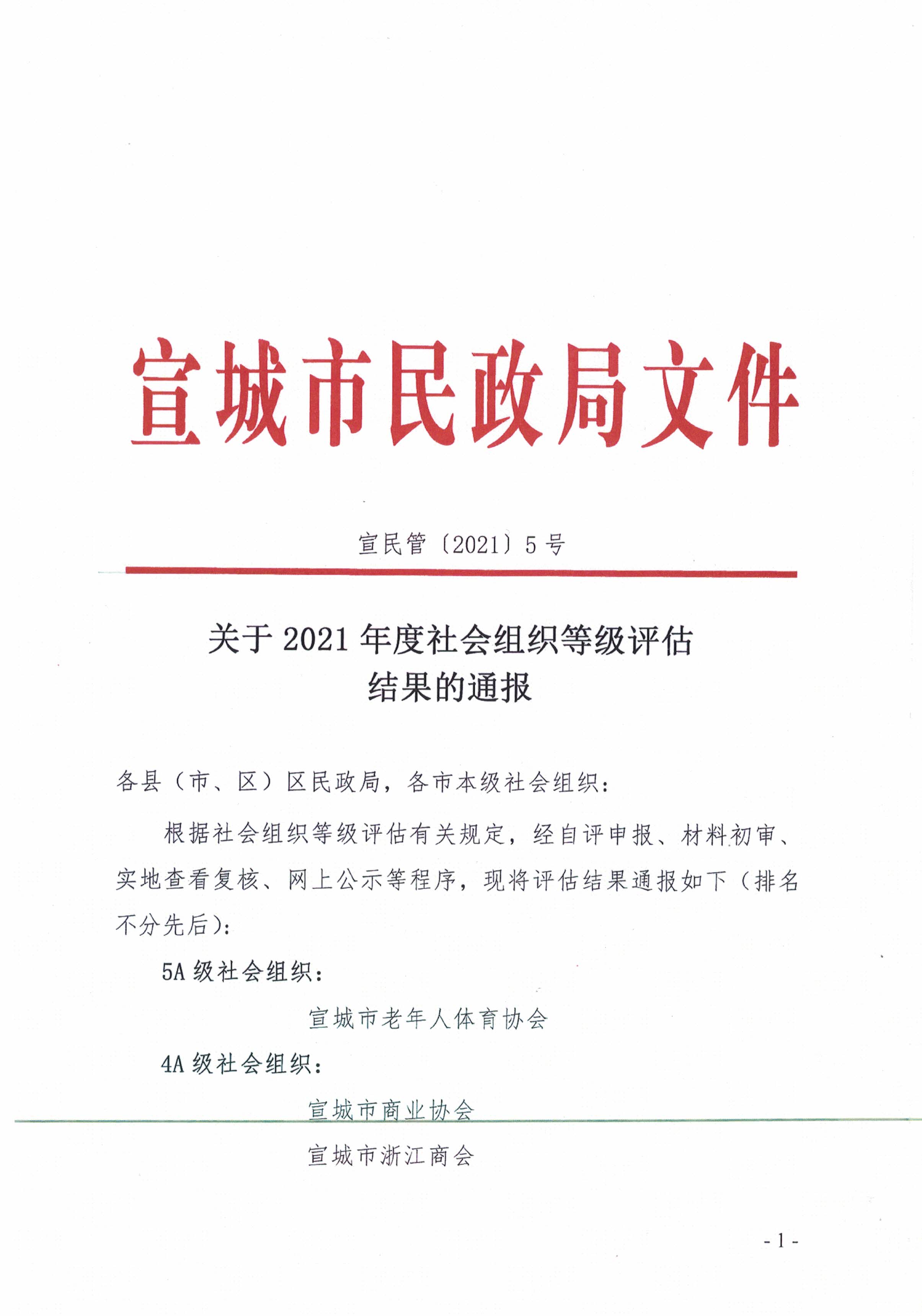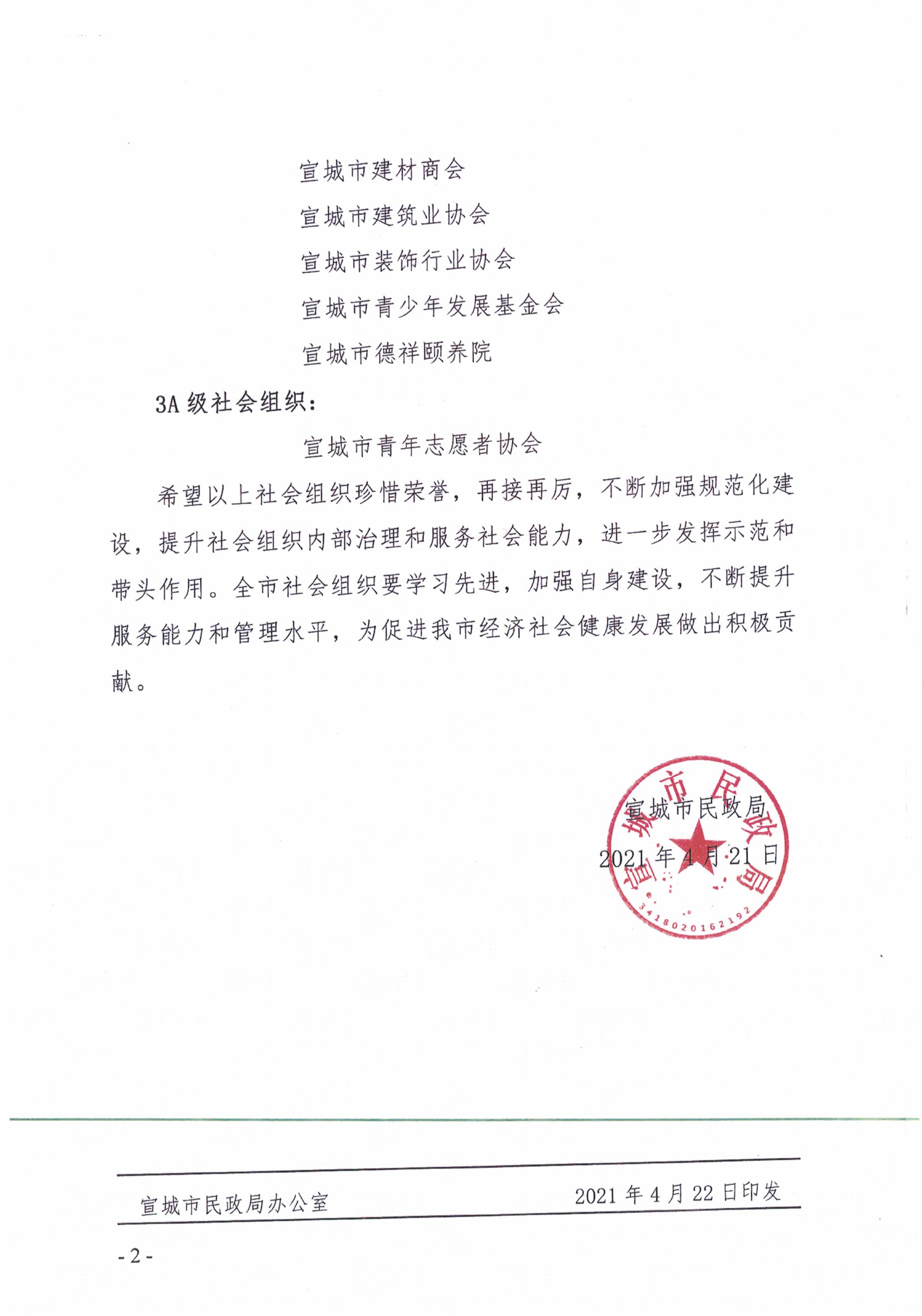 宣城市2021年度社会组织等级评估结果通报
