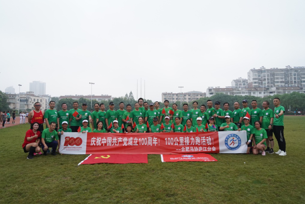 庐江马拉松协会在县体育中心举办100公里接力跑活动,庆祝中国共产党成立100周年,致敬百年奋斗历程。