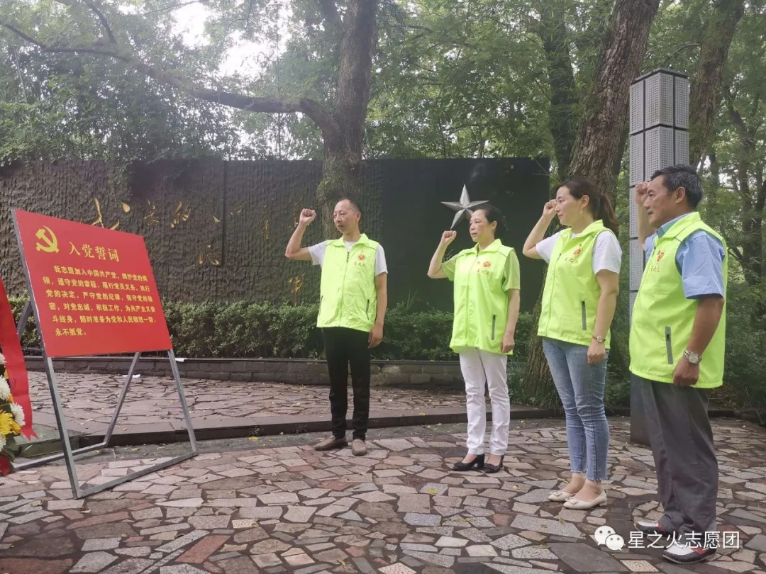 6月26日,为迎接中国共产党建党100周年,庐江星之火志愿团党支部组织开展“重温党史明初心、砥砺奋进促提升”主题党日活动。全体党员前往汤池镇新四军江北指挥部旧址接受革命传统教育,并在党旗前重温入党誓词。