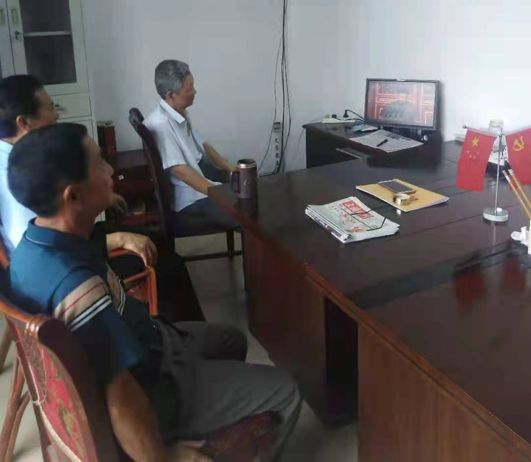 庐江县星之火志愿团党支部党员在各自电脑上收看周年大会。