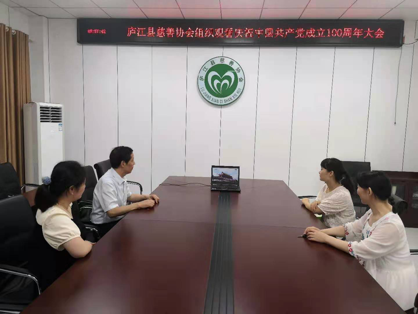庐江县慈善协会党支部在收看庆祝中国共产党成立100周年大会。