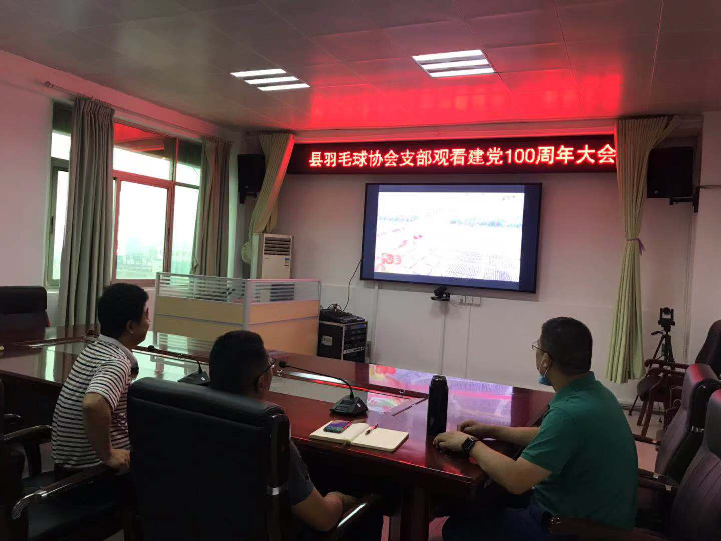 庐江县羽毛球协会党支部收看庆祝中国共产党成立100周年大会。
