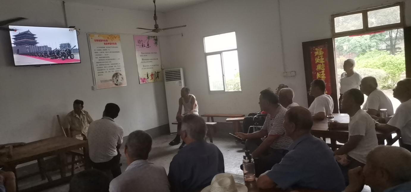 郭河三畈养老中心党支部带领院民观看庆祝中华人民共和国成立100周年大会。