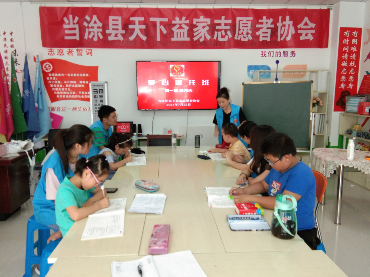 “爱心暑托班”开设,丰富儿童暑期生活。为丰富困境、留守儿童的暑期文化生活,当涂县天下益家志愿者协会招募具有丰富教学经验的志愿者,自7月19日起至暑假结束,开设两期“爱心暑托班”,融奥赛课堂、平安训练营和心理团辅训练营等夏令营活动,免费为孩子们提供课程辅导、科学普及与手工实验、主持、舞蹈、表演和外教英语等多项精彩纷呈的暑托“爱心大餐”,受到家长和孩子们的一致好评。
