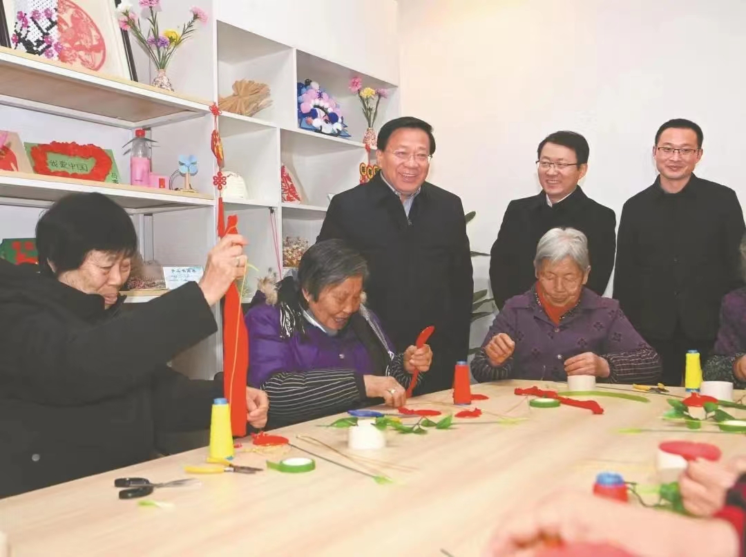 三岗村是全省最大的苗木花卉种植基地和销售基地,先后荣获“中国名村”“全国一村一品示范村”等称号。沿着整洁的街道,韩俊实地察看了“我的园艺家”乡村旅游项目,仔细询问苗木产业发展、带动群众就业等情况。他说,乡村振兴的重中之重是产业振兴,要坚持支部领着干、党员跟着干、群众一起干,因地制宜发展乡村特色产业,做好农文旅融合发展大文章,带动村民致富、集体增收。紧接着,韩俊随机来到村民刘玉霞家,与她拉起了家常,“家里几口人?”“收入来源靠什么?”“还有什么困难?”,祝愿她日子越过越红火。来到街道边的安徽中都园林绿化工程有限公司,韩俊与绿化养护工人攀谈起来,详细了解他们的收入、生活等情况,感谢他们用辛勤劳动绿了乡村、美了环境。