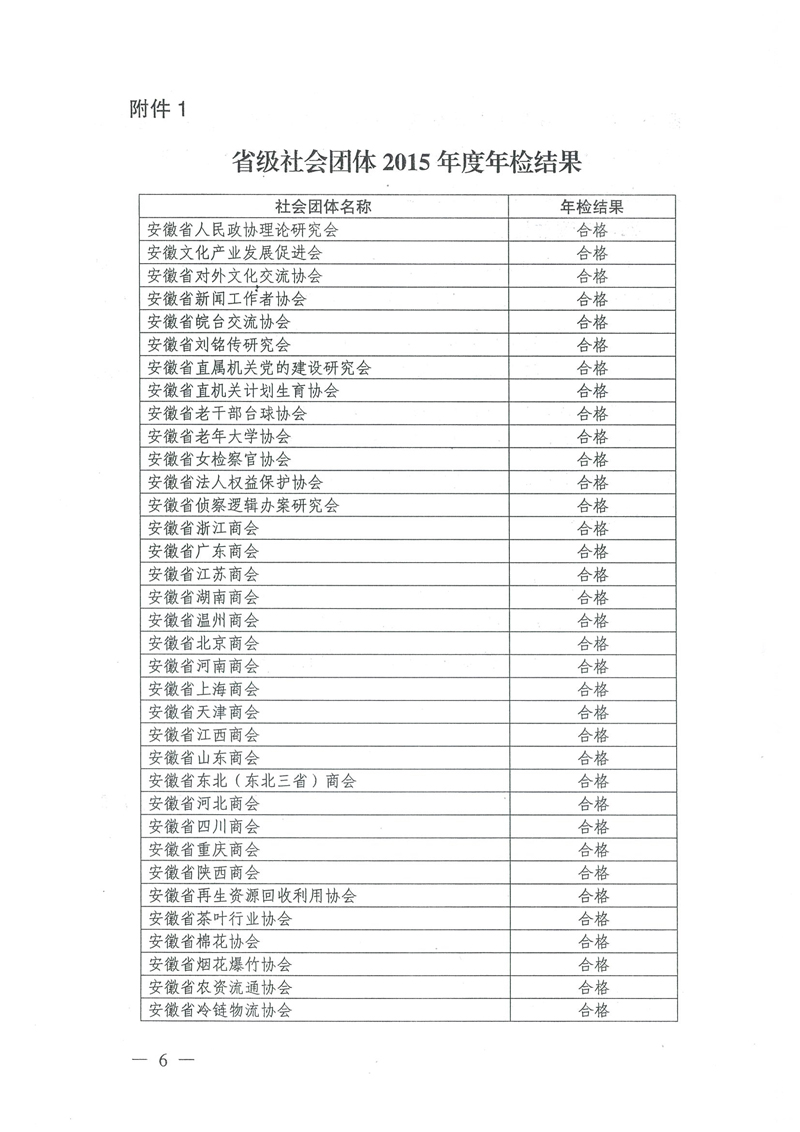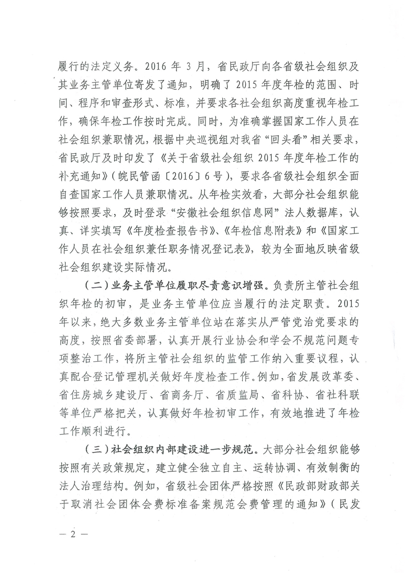 关于省级社会组织2015年度年检情况的通报