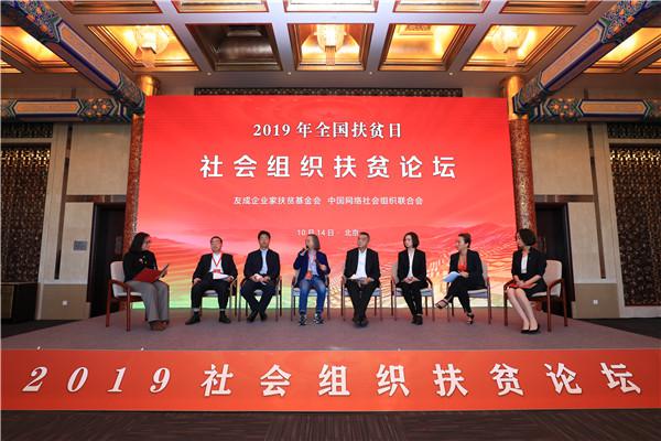 2019年10月14日,在国务院扶贫办社会扶贫司、中央网信办信息化发展局、民政部社会组织管理局的指导及2019扶贫日系列论坛组委会的组织下,友成企业家扶贫基金会与中国网络社会组织联合会共同主办以“凝聚社会力量 助力脱贫攻坚”为主题的社会组织扶贫论坛。国务院扶贫办社会扶贫司司长曲天军,中央网信办信息化发展局副局长张鹏,民政部社会组织管理局副局长陈小勇,国务院参事、友成企业家扶贫基金会副理事长汤敏及全国人大社会建设委员会副主任委员、中国网络社会组织联合会会长任贤良出席了本次论坛并发表致辞。中央网信办网络社会工作局巡视员、中国网络社会组织联合会秘书长赵晖主持了本次论坛。