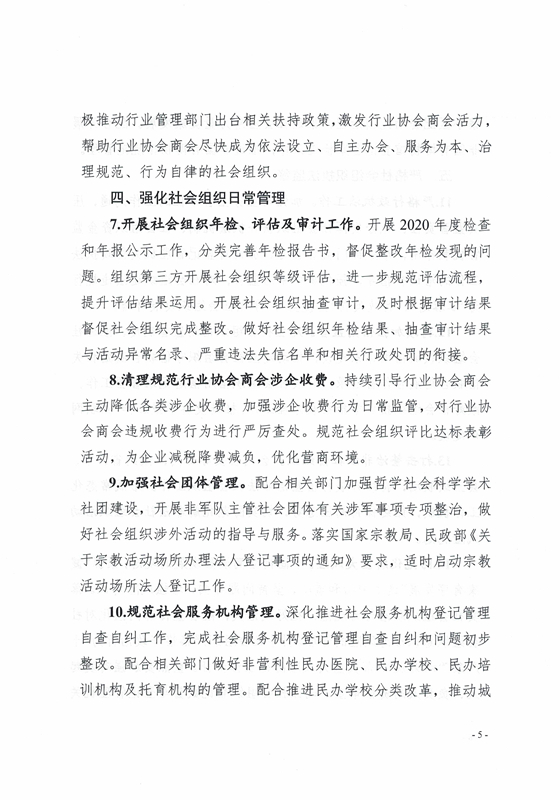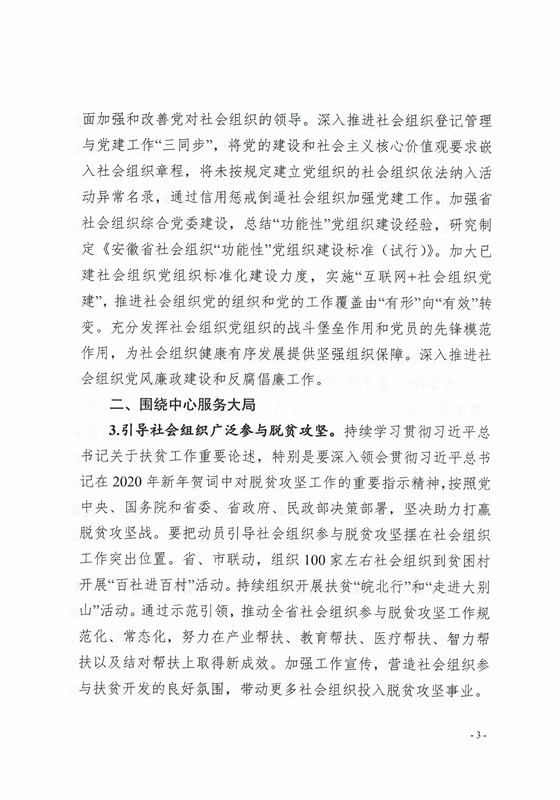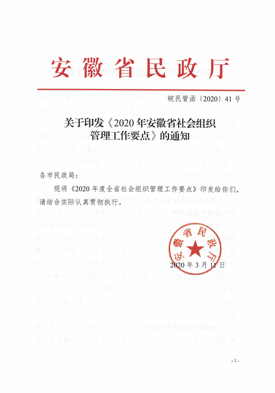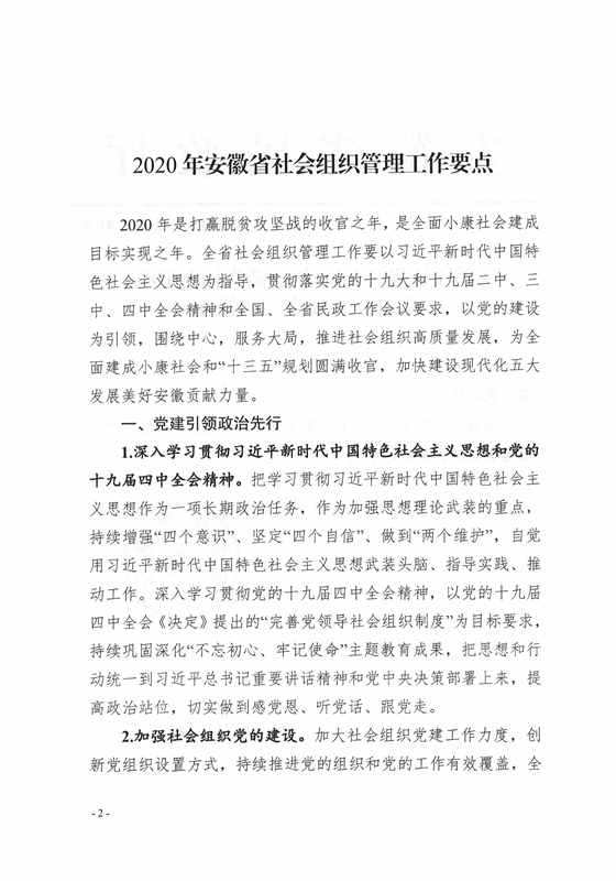 关于印发《2020年安徽省社会组织管理工作要点》的通知