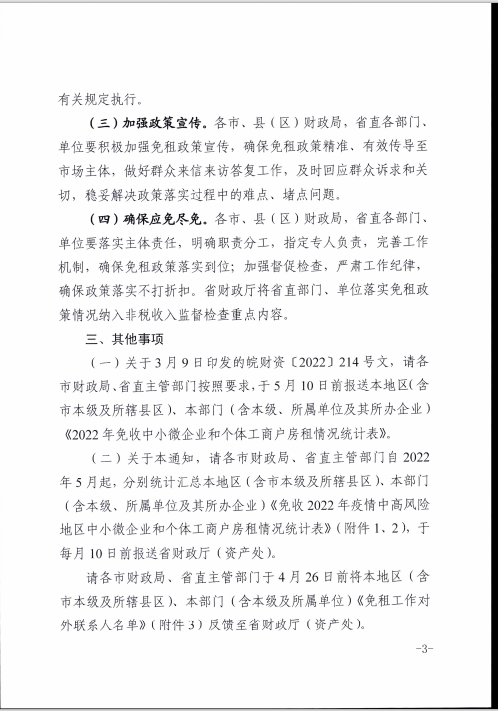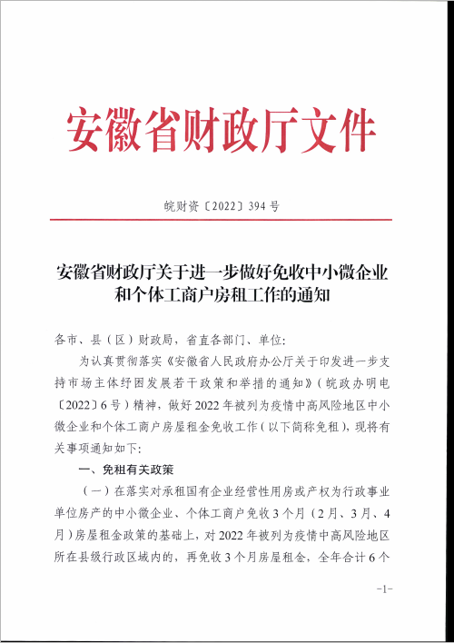 安徽省财政厅关于进一步做好免收中小微企业和个体工商户房租工作的通知