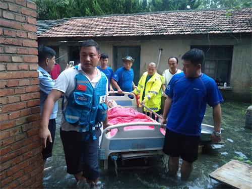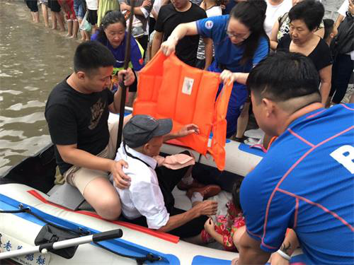 2018年8月18日,“温比亚”台风强降水影响,宿州四县一区各地内涝严重,各地出现了不同程度的洪涝灾害,受困群众较多。宿州蓝天队员迅速就近赶往各地内涝较严重的路段,帮助转移受困车辆和受困市民,在灾情面前处处彰显蓝天大爱和蓝天人无私奉献的精神。