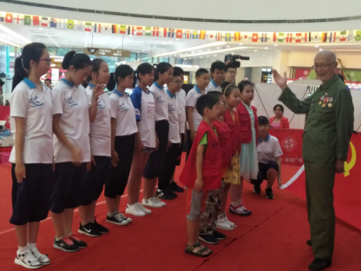 在红色的七月,八一建军节来临之际,“中国好人”革命老兵戴清在活动现场教中华公益小记者和四十二中学生志愿者学习敬军礼,并带领学生志愿者向党旗敬礼。四十二中参与志愿服务的老师方琼说道,“在八一来临之际参加献血和致敬行善者的公益活动,不仅是让孩子们了解到这个社会的正能量,更是让他们通过参与感受到社会的正能量,今后不断学习、成长为社会的正能量。”