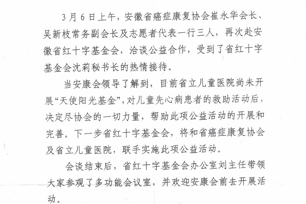 安徽省癌症康复协会与省红十字基金会洽谈公益合作