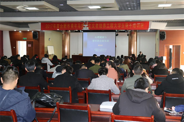 2017年12月10日,“2017年度合肥市青年马克思主义者培养工程大学生骨干培训班”在安徽省团校拉开序幕。为加强合肥在校大学生团干部对心理学知识的学习,提高团干部心理素质,安徽现代心理学研究院应邀出席并由科研总监庞良红老师开展了一场别开生动的心理健康讲座《心理健康与青年的全面发展》,来自合肥地区约40所在肥高校的校团干部近150余名大学生聆听了讲座。