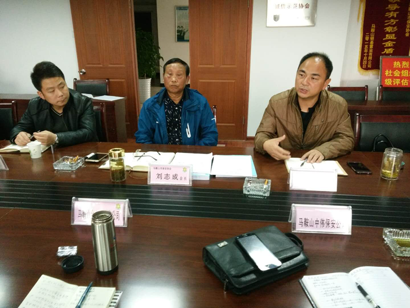 11月10日下午,马鞍山市保安协会召开了关于认真学习宣传贯彻党的十九大精神的会议。会议由会长刘志成主持,保安管理支队史志荣支队长、协会全体人员、各副会长单位参加。