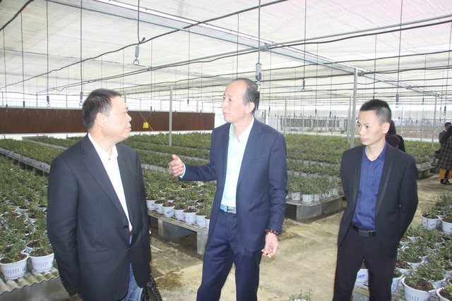 金洪洋董事长(中)给来访企业家介绍石斛