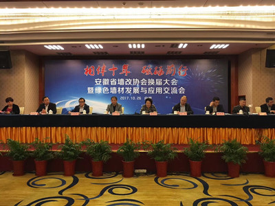 安徽省墙体材料革新和建筑材料节能协会换届大会暨绿色墙材发展与应用交流会于10月26日在合肥市隆重召开。全国墙材革新工作委员会会长滕军力、省经信委原材料处副处长赵森、节能处副处长赵德、省墙改办副主任余岳超受邀出席并讲话。大会圆满完成了协会会长、法定代表人、副会长和理事会的换届选举工作,共计170多位代表参加会议。