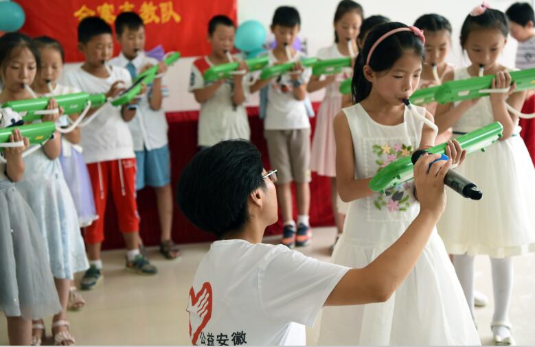 活动当天,孩子们和老师们表演了精心准备的歌曲、小品、相声、口风琴等节目,现场气氛一度活跃。汇演最后,一曲由所有教师合唱的《再见》诉尽离别之人的不舍,也使得离别的伤感情绪在全场蔓延。在这里,课堂上孩子们称他们为老师,下了课却都亲热的叫着哥哥姐姐。“哥哥姐姐每天都会送没有家长的小孩回家。”年仅10岁的留守儿童李思琪说。开设的课程都是素质教育课和选修课,主要就是帮助小朋友们拓宽兴趣爱好,知道自己真正喜欢什么,见识到更多,学习到更多。