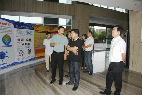 随后,毛铁年一行来到中国科学技术大学先进技术研究院,在先进技术研究院管理服务中心主任兼资产财务部副部长刘辉灿、行政办公室主任苗苗等陪同下进行调研。毛铁年一行首先观看了先进技术研究院的发展及领导关怀图片展,刘辉灿做了讲解。他说:中国科学技术大学先进技术研究院是由安徽省、中国科学院、合肥市和中国科学技术大学按照“省院合作、市校共建”的原则所建设的区域产业技术创新研究院。先进技术研究院于2012年7月启动建设,2012年10月挂牌运行,一期工程占地面积574亩,已完成建设面积33.5万平米。在省院市校四方的共同努力下,建设国家量子保密通信“京沪干线”及“量子科学试验卫星”合肥总控中心,率先在世界领域开展量子远程大规模保密通信应用工程。目前,已建设联合实验室47家,累计引进各类人才490人,累计孵化企业199家,培育国家级高新技术企业19家,已申请专利140项。2016年9月,被列为安徽省系统推进全面创新改革试验试点单位。