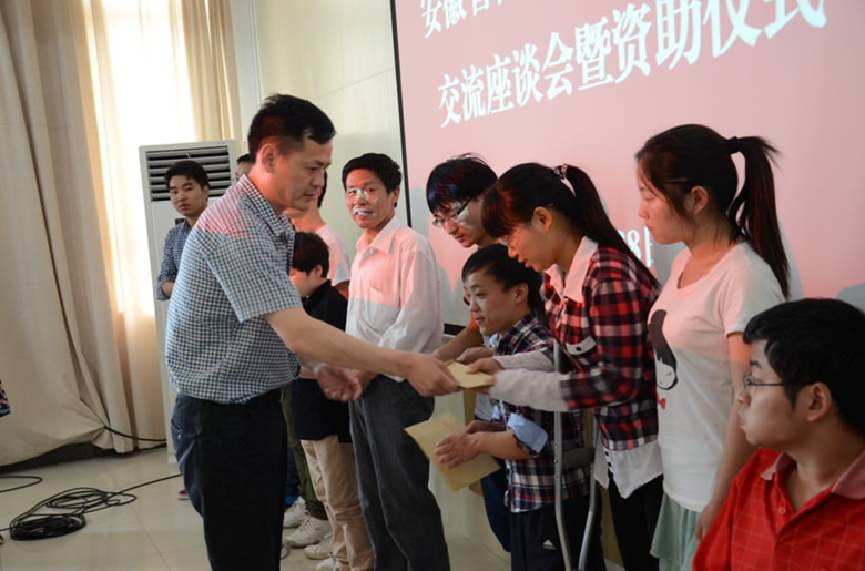 本次活动科企协共资助了15名残疾学生,是继去年8月份在合肥师范学院捐助30名大学新生以来的第二次爱心捐助活动。合肥师范学院副校长曹卓良在介绍学院情况时,也提及了第一次爱心捐助活动在学生中产生的影响,这不仅仅是一次爱心捐助行为,更在精神上给予学生关注和鼓励。学生代表朱金凤恰好是这2次爱心捐助的对象,她说,“在这2次爱心捐助中,我更加深刻地感受到了企业家、校方对我们生活、学习的关心和关注,我们也一定不会辜负大家的期望,积极向上,待到学有所成时,也一定会像在座的企业家一样,回馈社会,传递正能量。”