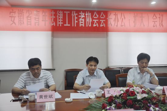 6月29日,省青年法律工作者协会会长办公(扩大)会议在合肥召开,团省委副书记王琦出席会议并讲话。省公安厅治安总队总队长邢栋、合肥市检察院副检察长黄世斌、省律师协会业务部主任贾晓清、省律协未保委主任孔维钊等省青法协副会长,以及省青法协理事和会员代表近20人参加会议。会议听取了省青法协秘书处工作汇报,研究通过了省青法协副会长人选推荐办法,审议了省青法协理事、常务理事、秘书处人员建议名单,并就名额分配方案、人选推荐情况和省青法协第三次会员大会的相关事项进行了讨论和研究。