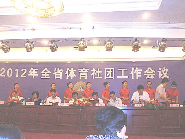 5月29日上午,2012年全省体育社团工作会议在合肥隆重召开。省体育局领导冯潮、高维岭、许广全、徐晓明、陈海军和安徽体院领导丁自勉、梁绿林出席会议。省体育局机关各处室、各直属单位主要负责人,各省辖市和广德、宿松县体育行政部门领导,各行业体育协会及各省级单项体育协会负责人等,共计180余人参加了会议。高维岭代表省体育局和省体育总会作了工作报告,冯潮作了重要讲话。大会由徐晓明主持。