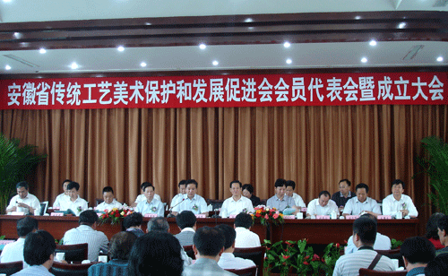 5月16日上午,安徽省传统工艺美术保护和发展促进会会员代表会暨成立大会在安徽八一宾馆隆重举行,500余人参加了成立大会。当天上午通过审议了章程、理事、常务理事、副会长、秘书长、会长以及相关会员、会费收缴和管理办法。安徽省经信委副巡视员孙慧琳当选为会长,并发表就职演说。会议现场还为第一届省传统工艺美术产品展览获奖产品颁奖。该会是由全省工艺美术工作者以及从事工艺美术生产、科研、商贸、教育、学术研究等部门人员及单位自愿组成的跨行业、跨部门、跨所有制、独立承担民事责任的非营利性社会团体,该会的成立对促进推动安徽工艺美术事业的发展具有里程碑式意义。