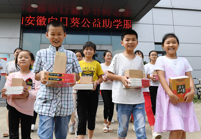8月25日,六安市金安区淠东乡的33名贫困学子,收到安徽向日葵公益助学服务中心捐赠的爱心红包、图书、马克杯等爱心物资。当天,“向日葵”2018年度捐赠仪式在六安移动举行,仪式上特别邀请了两位教育专家与孩子们交流学习方法和学习心得。