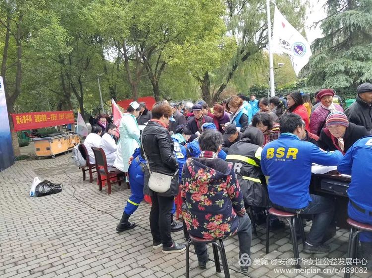 本次活动得到芜湖市古建园林建设有限公司、安徽俊昊文化传媒有限公司、合肥希博网路科技有限公司、合肥高新区小脚丫爱心服务社、安徽新华公益医疗分队、安徽新华公益爱心车队爱心支持。此次活动免费发放黄手环265枚,为100余位老人进行了健康咨询和检查