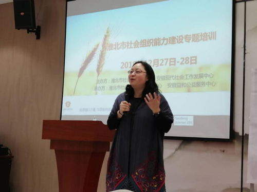 12月27至28日,淮北市社会组织能力建设专题培训在淮北高登假日酒店举行。本次培训是由淮北市社会组织管理局、安徽现代社会工作发展中心主办,安徽益和公益服务中心和淮北市社会组织培育发展中心承办。来自淮北市各区县的六十多名社会组织成员参与了此次培训,会议协作者由安徽益和公益服务中心的执行主任蒋倩担任。