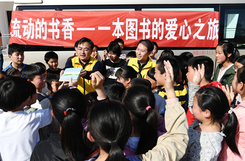 当天,为迎接世界读书日的到来,安徽向日葵公益助学服务中心联合合肥市少儿图书馆走进岳西县冶溪镇白沙小学,开启“流动的书香——一本图书的爱心之旅”公益活动。在崇山峻岭中,安徽省首辆汽车图书馆沿着崎岖的山路,满载着浓浓的书香和对山区孩子们的关爱,将合肥实验学校2015级孩子们捐赠的105本图书,“结对”送给岳西县冶溪镇白沙小学的105名孩子,让省城孩子与大别山孩子“同读一本书”,用实际行动培育大别山革命老区孩子们的阅读兴趣。