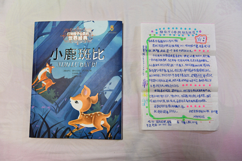“小鹿斑比不懂就问,勇于尝试,遇到困难不退缩,这种精神值得我们学习,希望你能喜欢这本书!”4月17日,岳西县冶溪镇白沙小学五年级同学姜文,不仅收到合肥实验学校孩子们捐来的儿童文学经典《小鹿斑比》,而且还收到他们写来的一封热情洋溢的信。“这本书很有名,终于可以读到了!”姜文一口气读完信,显得十分兴奋,“同学们每人都领到了一本自己喜欢的书,太好了!”