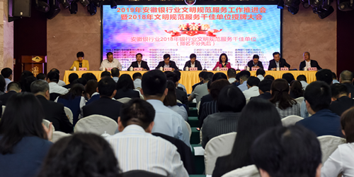 2019年4月25日,安徽省银行业协会在宣城绩溪召开了2019年安徽银行业文明规范服务工作推进会暨2018年文明规范服务千佳单位授牌大会。会议由安徽省银行业协会徐光亚同志主持。安徽银保监局副局长施其武、安徽省社会组织管理局处长夏惠芬出席会议。会长(副会长)单位和会员银行分管领导、省银行业协会文明规范服务工作委员会委员、2018年银行业文明规范服务千佳单位负责人、各市银行业协会相关负责人共120余人参加会议。