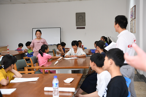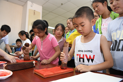 6月23日一大早,孩子们和省青年委员来到省图书馆古籍部,参观体验古代雕版印刷术,现场见证古书修复技艺。工作人员一边介绍古书刻印技术,一边用刷子蘸上红墨,在雕版上均匀涂抹,然后覆上宣纸,再用一把干净刷子在纸背上轻轻刷,一会儿工夫,一张包公头像就雕刻出来了。“真是太神奇了,我们也要试试!”在工作人员指导下,孩子们一一排队体验,直呼过瘾。“古书破损了,如何延续生命?”在古书修复技艺展示现场,工作人员简单地用浆糊、小刀等修补工具,就将一张破损的纸张修复如新,赢得孩子们阵阵夸赞。“原来这就是化腐朽为神奇的古书修复技术,让我们大开眼界。但古书修复肯定很不容易,我们平时还是要好好珍惜图书。”合肥市乐农新村小学二年级同学陈梓桐说。