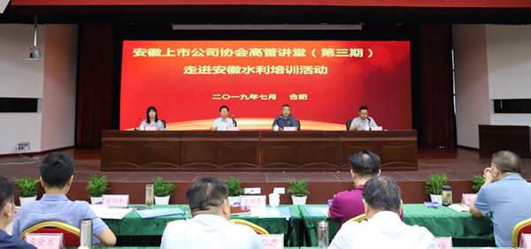 7月18日,我会在安徽水利举办安徽上市公司协会“高管讲堂”第三讲,公司董监高及子公司负责人、控股股东安徽建工集团的高管等200余人参加培训。安徽建工集团总经理刘家静、安徽水利董事长王厚良、我会副会长兼秘书长袁宏生等出席活动。