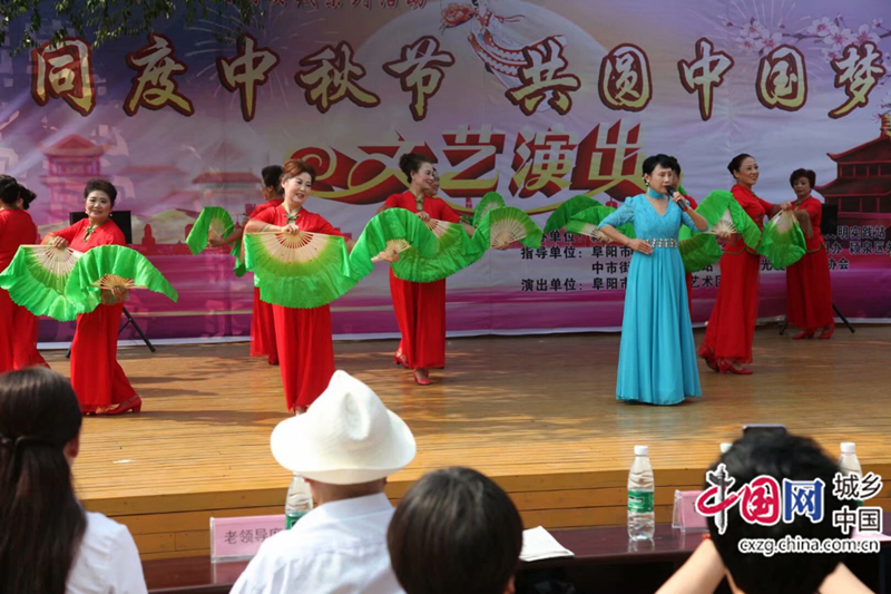 阜阳阳光爱心公益协会艺术团演员在惠泉社区“同度中秋节,共圆中国梦”文艺活动舞台演出。