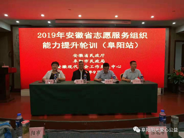 9月17日,2019年安徽省志愿服务组织能力提升轮训在阜阳举行。省民政厅慈善事业促进和社会工作处处长张振粤、团省委宣传部副部长方芳、阜阳市民政局局长、党组书记张春、阜阳市民政局副局长王海燕等出席轮训开班仪式。