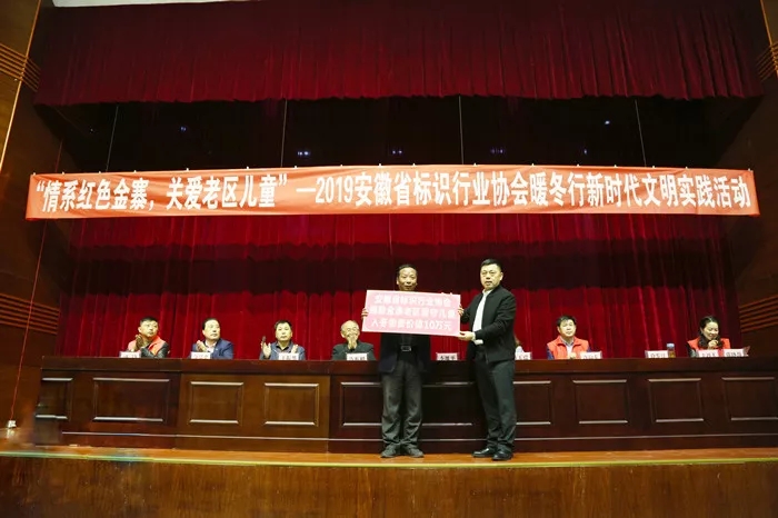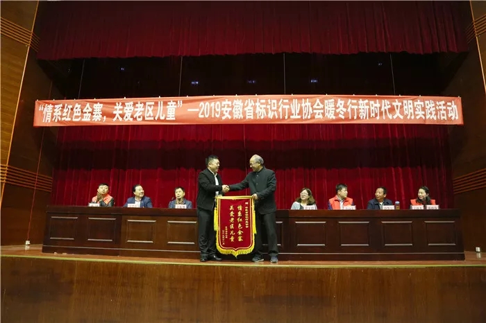 为了扎实开展“不忘初心,牢记使命”主题教育,在春雨公益协会的牵线搭桥和长期准备下,11月16日,安徽省标识行业协会一行130多人奔赴金寨县,开展“情系红色金寨,关爱老区儿童”新时代文明实践活动。安徽标协50多家爱心会员单位向南溪镇、汤家汇镇75名困难留守儿童送来了价值10多万元的入冬物资。安徽标协会长李继平在捐赠词中说道:十年树木,百年树人;立业兴邦,教育为本。教育关系着国家的前途和命运,支持贫困地区的教育事业是省5A级社会组织协会安徽标协义不容辞的责任和义务。