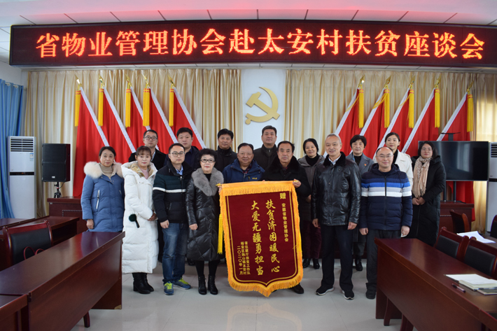 在太安村党群服务中心,安徽物协一行与省住建厅驻该村扶贫工作队队长、村党支部第一书记、省住建厅房地产监管处副处长陈必喜及该村部分干部群众座谈。扶贫工作队和太安村向安徽物协赠送了锦旗。座谈会上,陈必喜副处长详细介绍了太安村的自然情况,并向安徽物协专门组织爱心捐款、冒雪赶到村里开展扶贫济困,表达敬意之情。